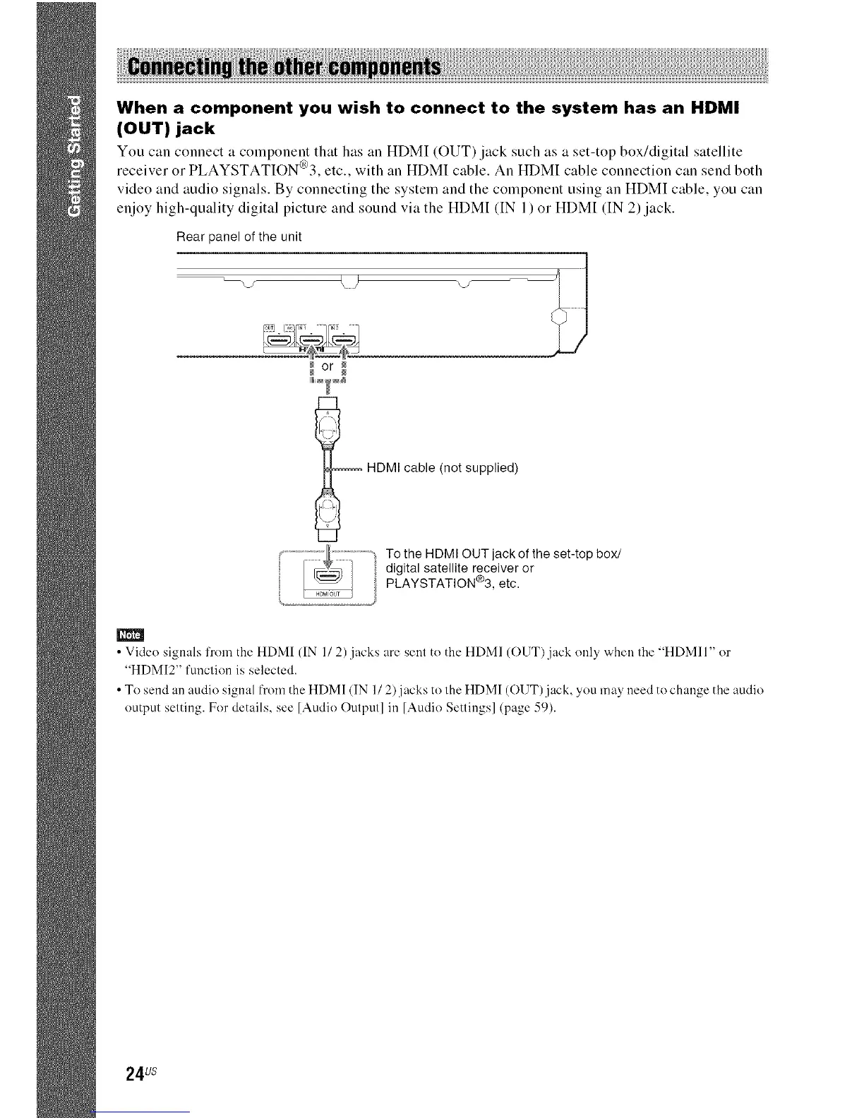 receiver or PLAYSTATION®3, etc., with an HDMI cable. An HDMI cable connection can send both