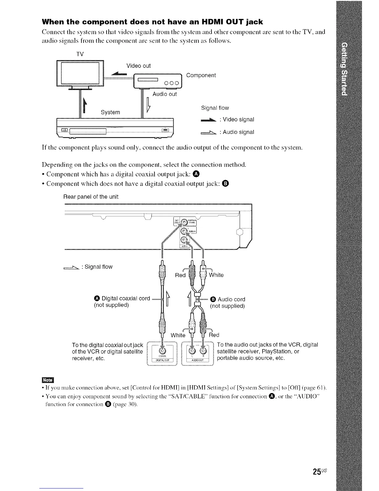 • If you make connection above, set [Control for HDMI] in [HDMI Settings] of [System Settings] to [Off] (page 61).