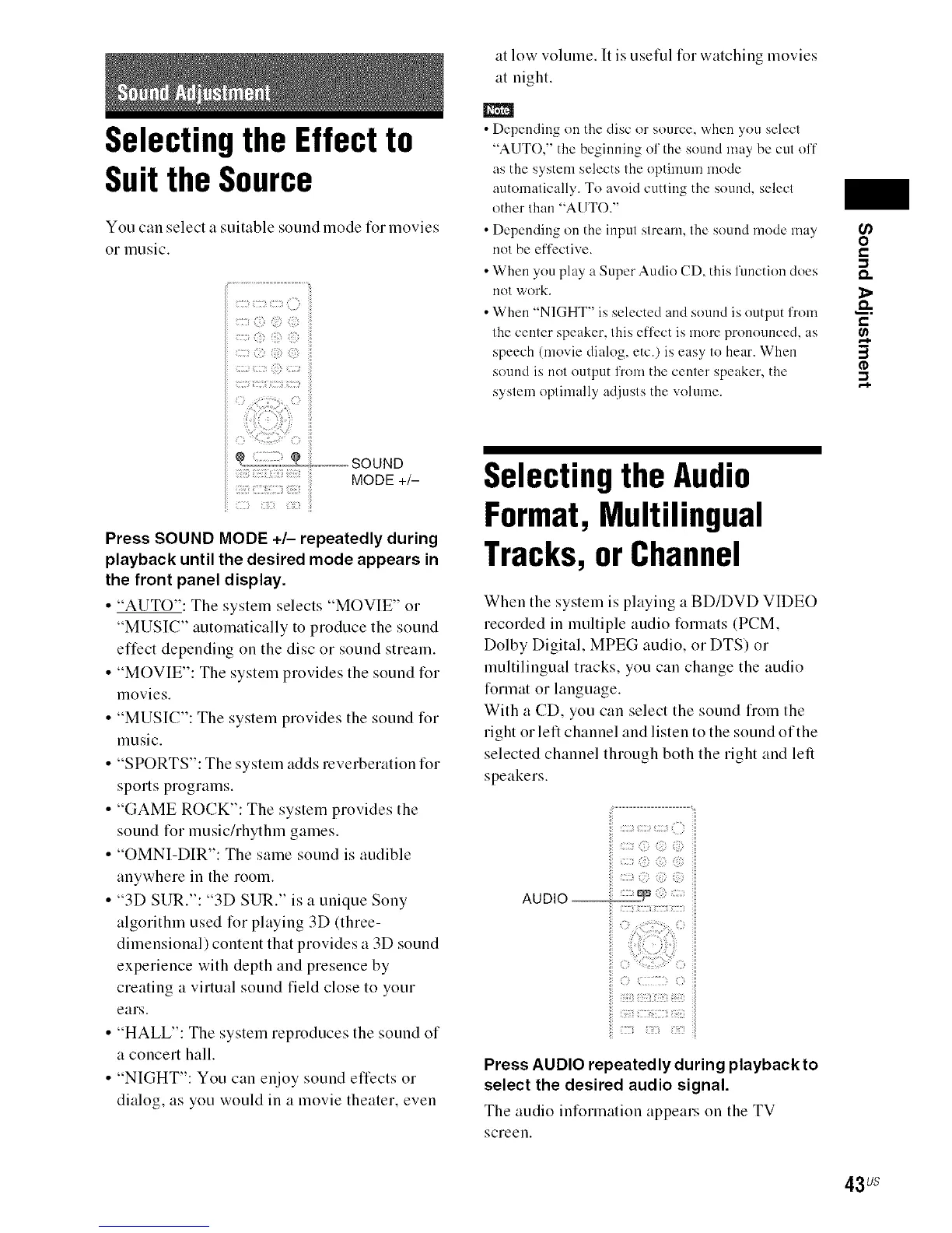 Press SOUND MODE +/- repeatedly during
