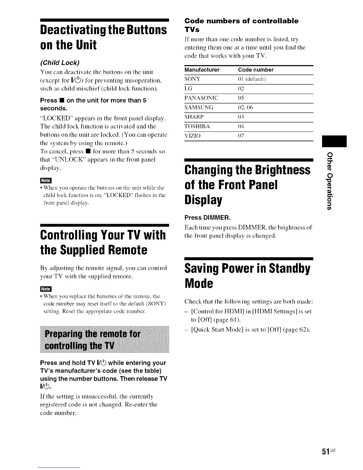 code number may reset itself to the default (SONY)