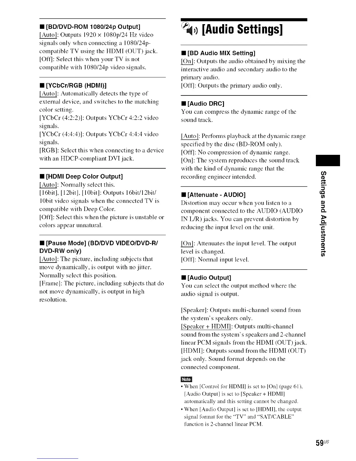 [HDMI]: Outputs sound fiom the HDMI (OUT)