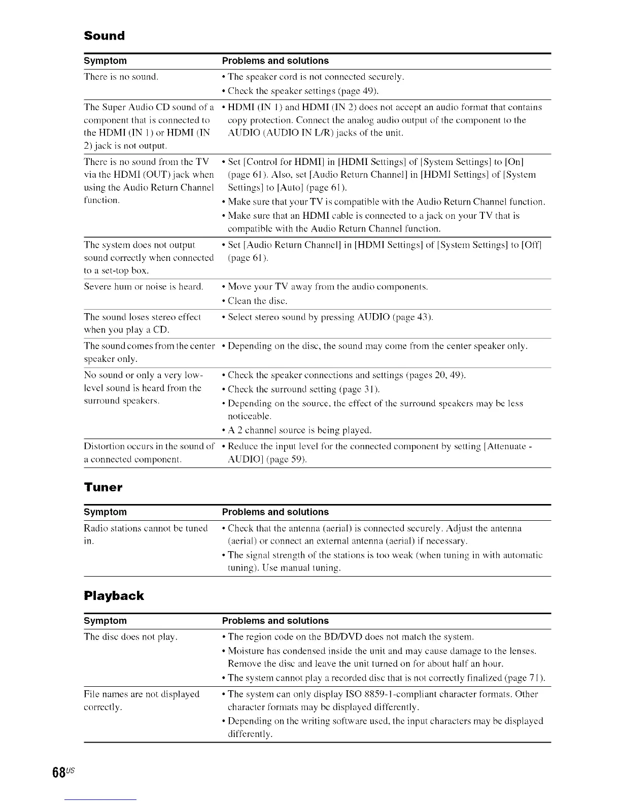 The Super Audio CD sound of a • HDMI (IN 1) and HDMI (IN 2) does not accept an audio format that contains