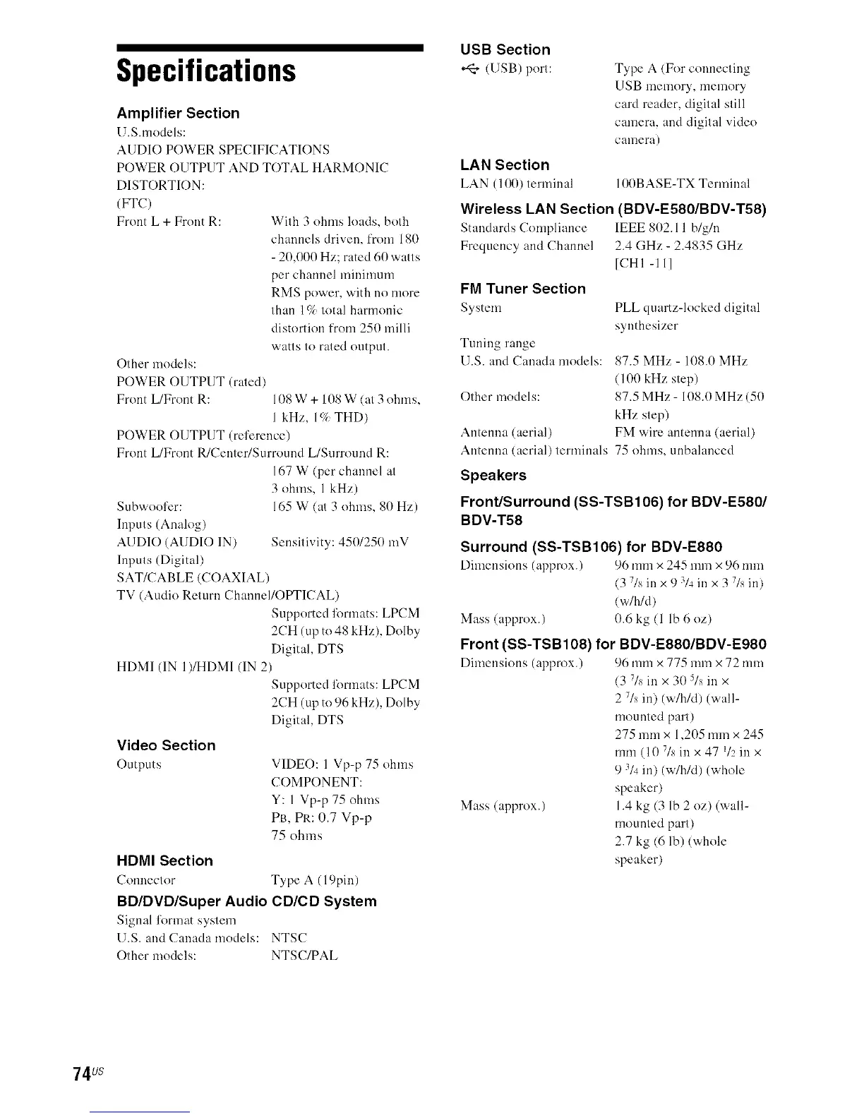 Front (SS-TSB108) for BDV-E880/BDV-E980