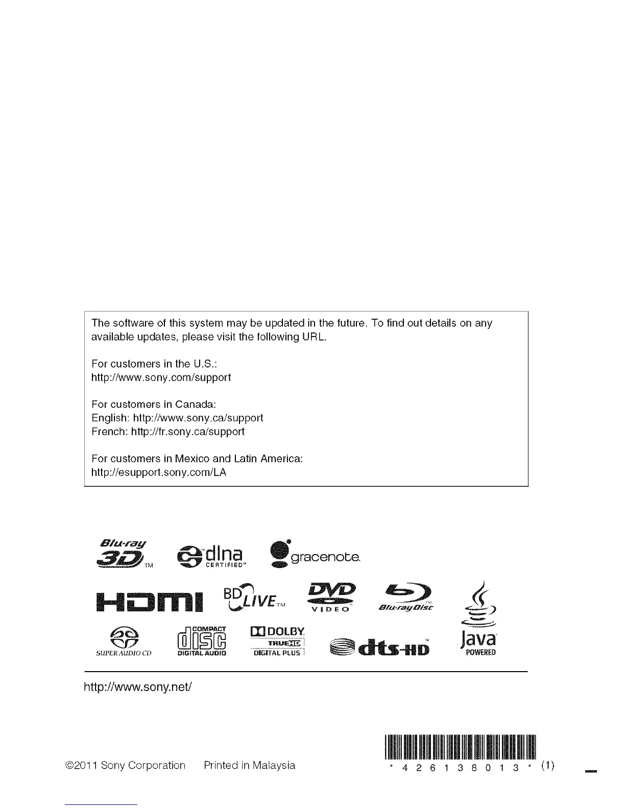 ©2011Sony Corporation Printed in Malaysia * 4 2 6 1 3 8 0 1 3 * (1)
