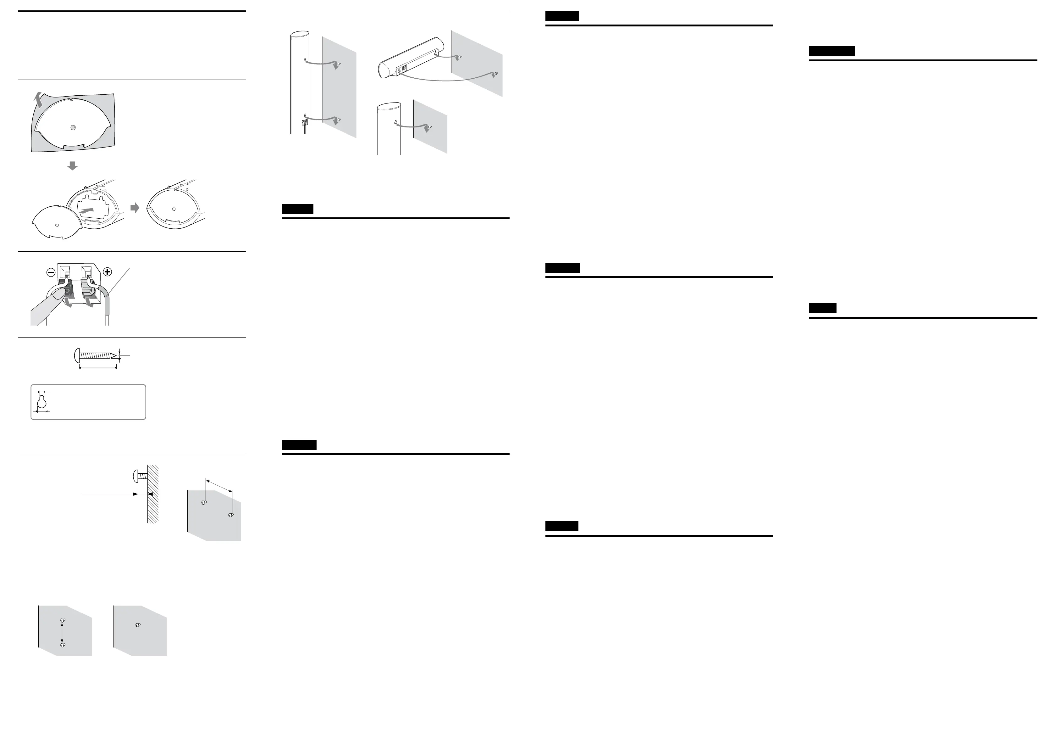 a następnie do ściany. Głośniki należy instalować na płaskich, pionowych