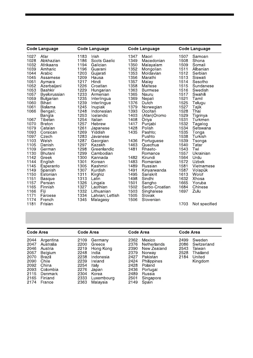 Sony BDV-EF200 - Language Code List