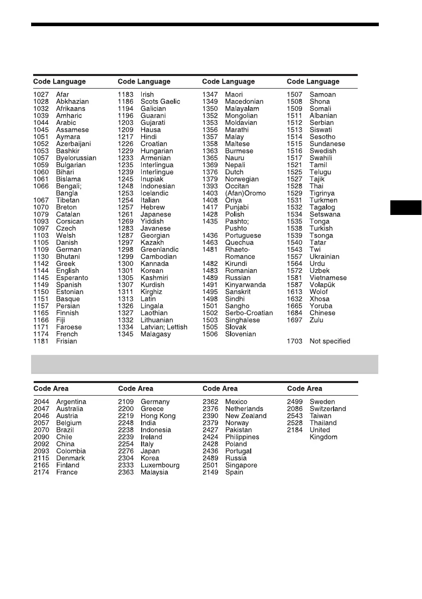 Sony BDV-EF220 - Language Code List