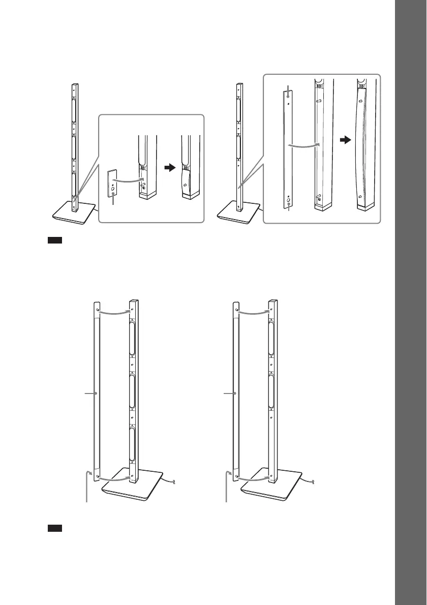 Use the baffle cover (short) for the front speaker, baffle cover (long) for the surround speaker.
