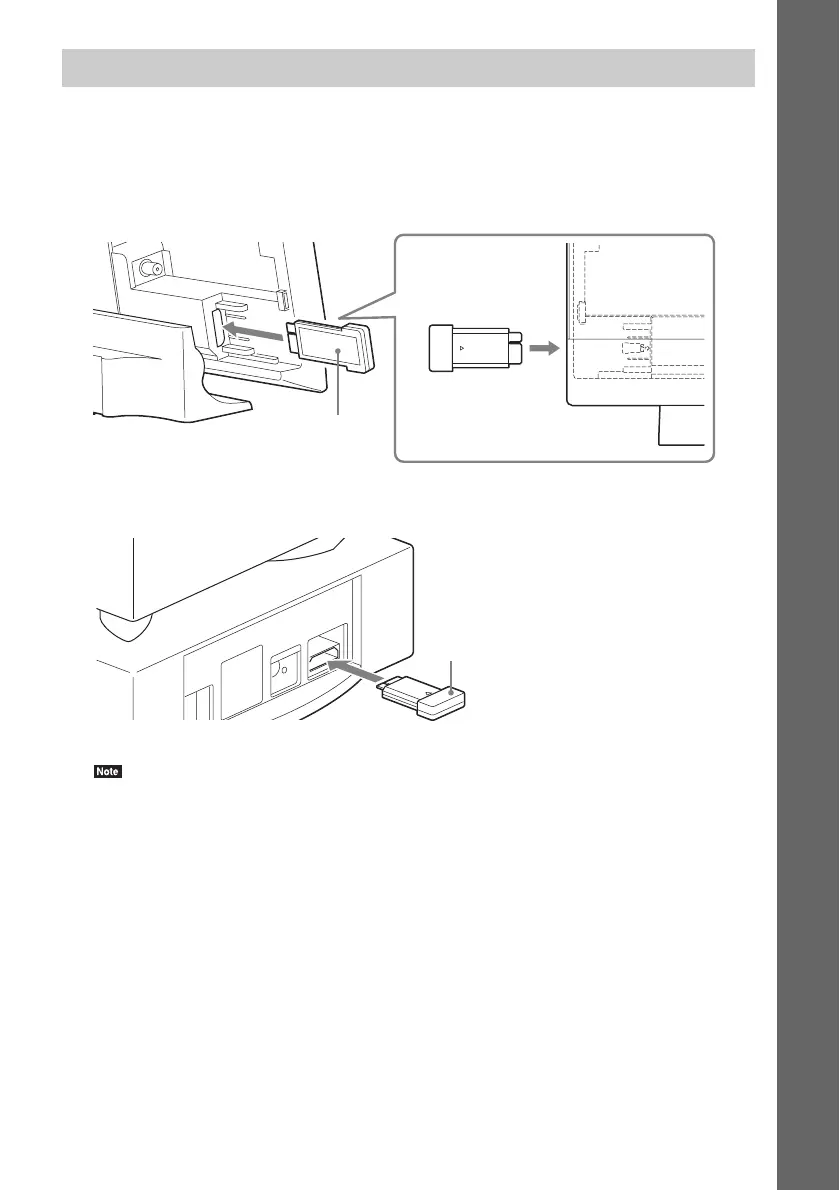 2 Insert a wireless transceiver into the subwoofer.