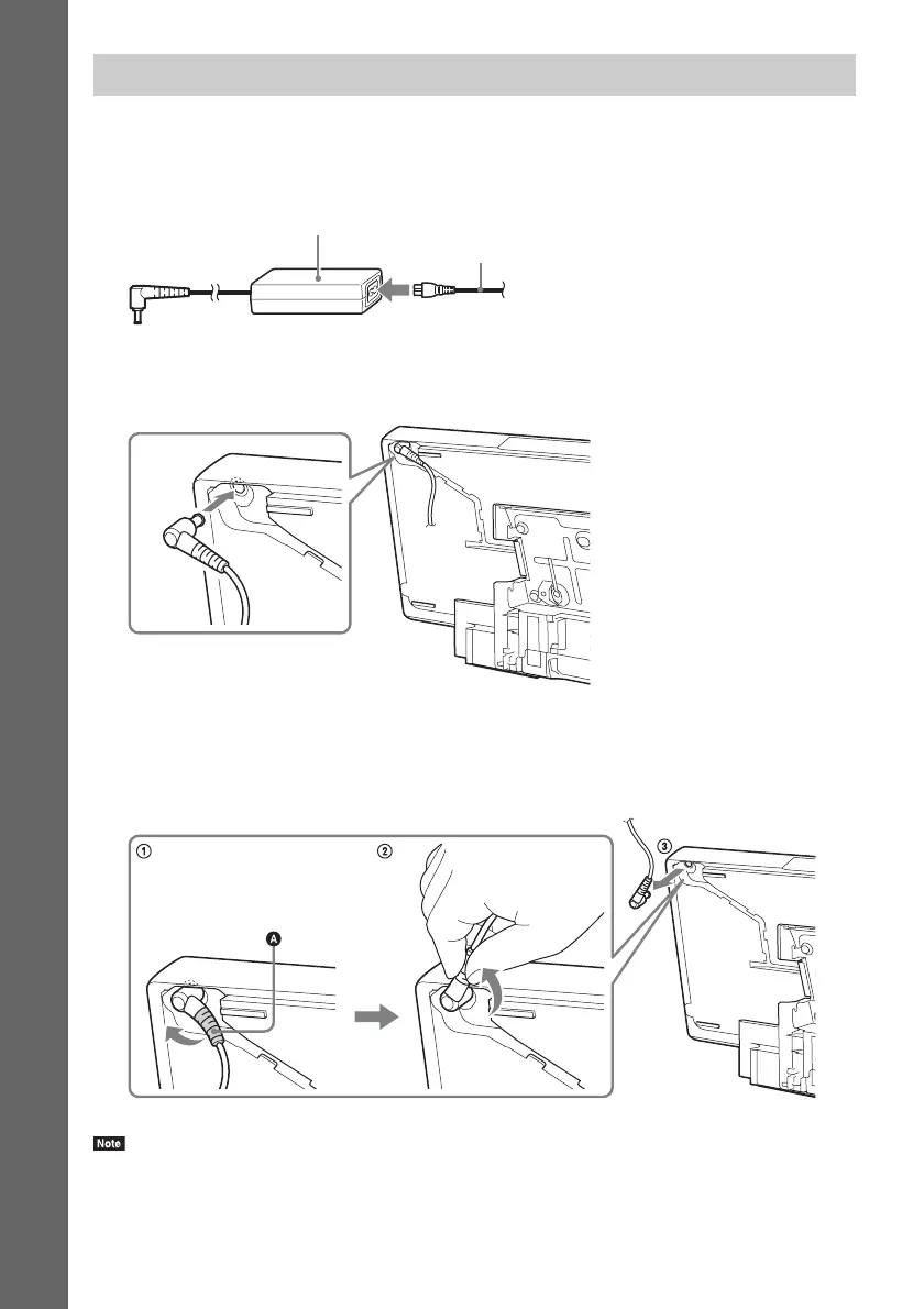 1 Connect the AC power cord (mains lead) to the AC adapter.
