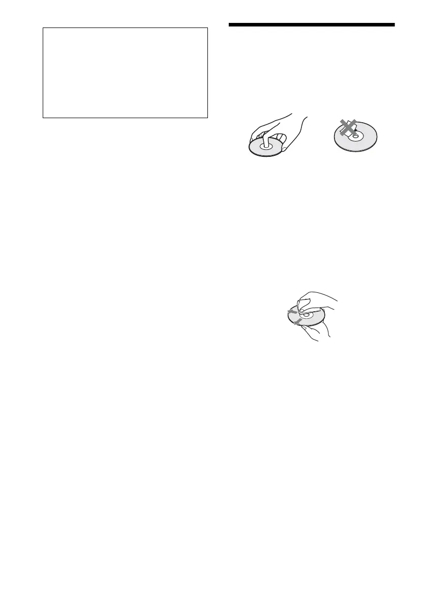 • Do not stick paper or tape on the disc.