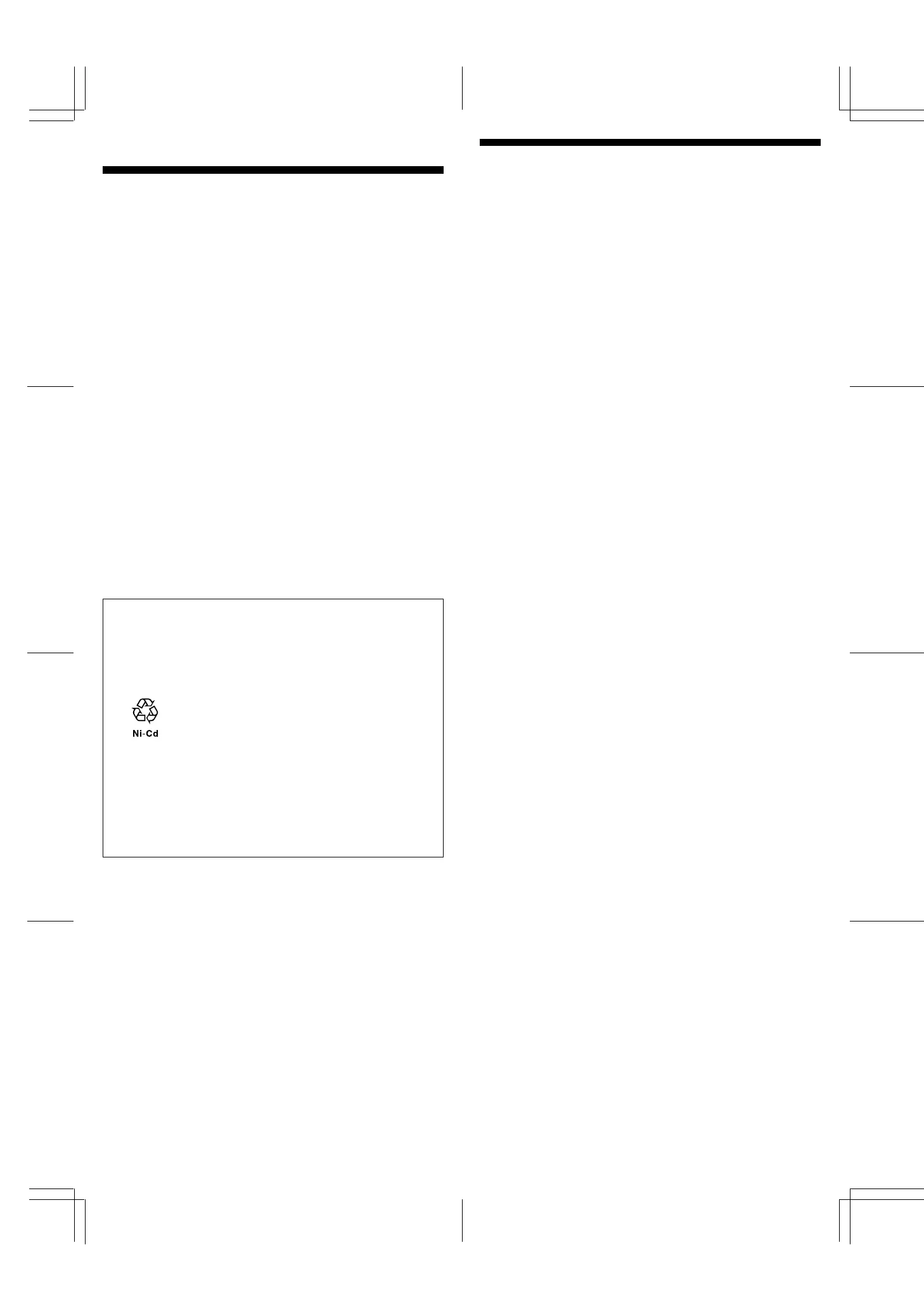 Note: In some areas the disposal of nickel-cadmium