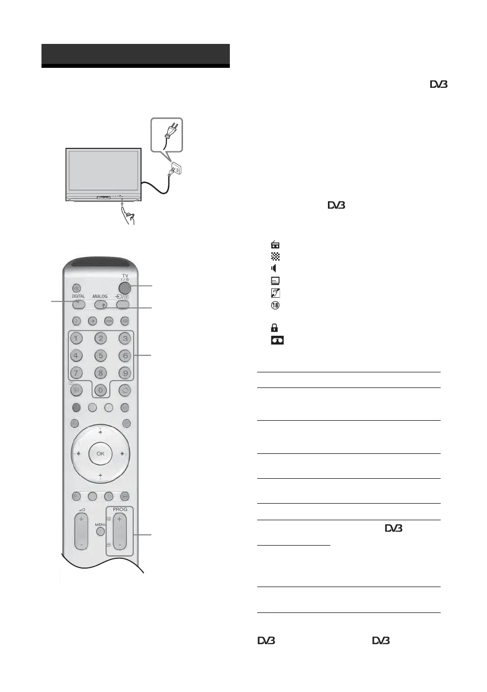 +/- to select a TV channel.