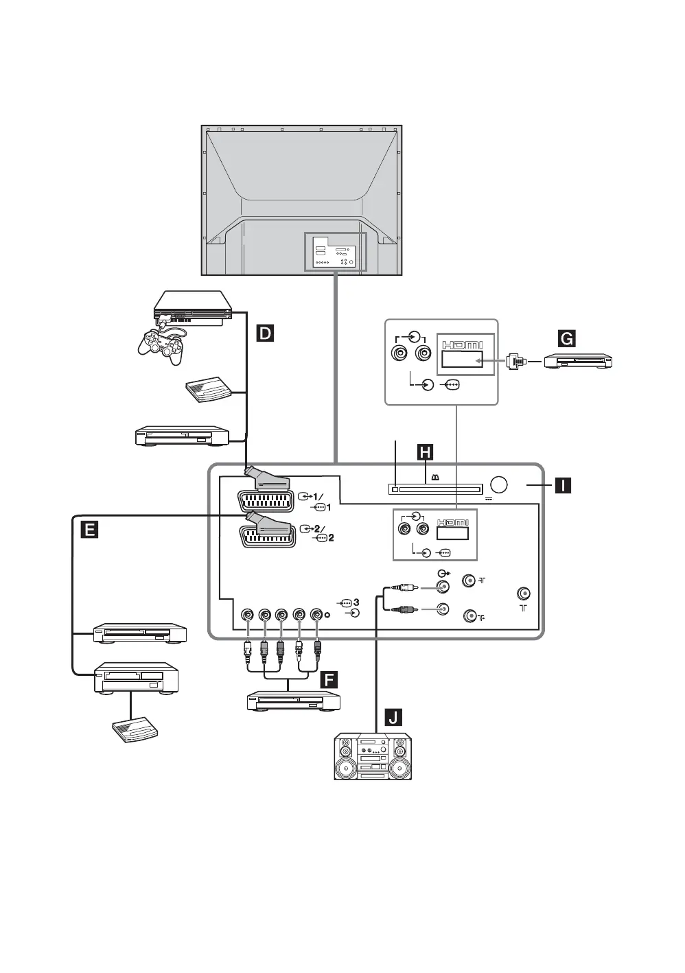 Conexiones a la parte posterior del televisor