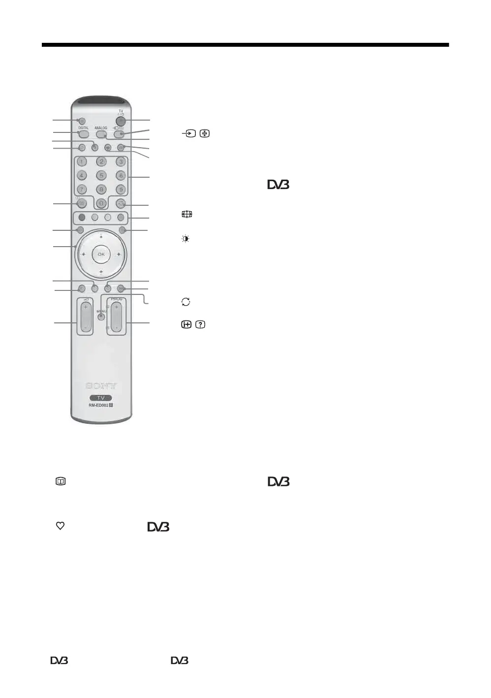 • In digital mode (page 16, 18): Selects the options at the bottom of the screen in the Favourite and EPG digital menus.