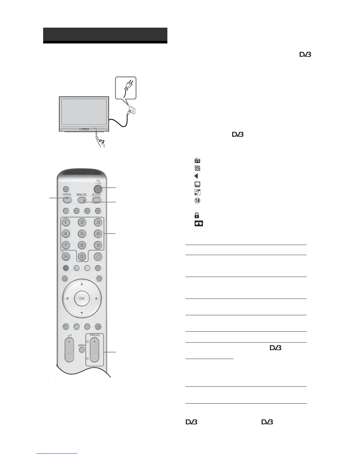 +/- to select a TV channel.