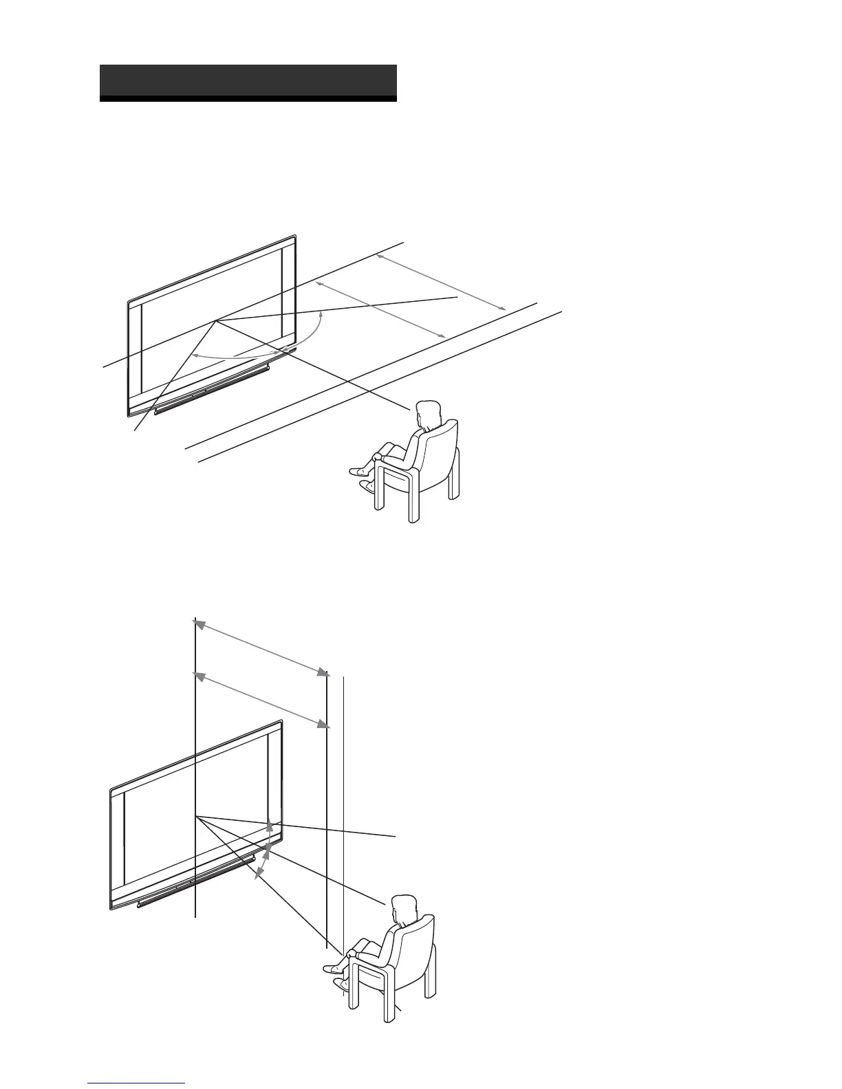 For the best picture quality, try to position the TV set so that you can view the screen from within the areas shown below.