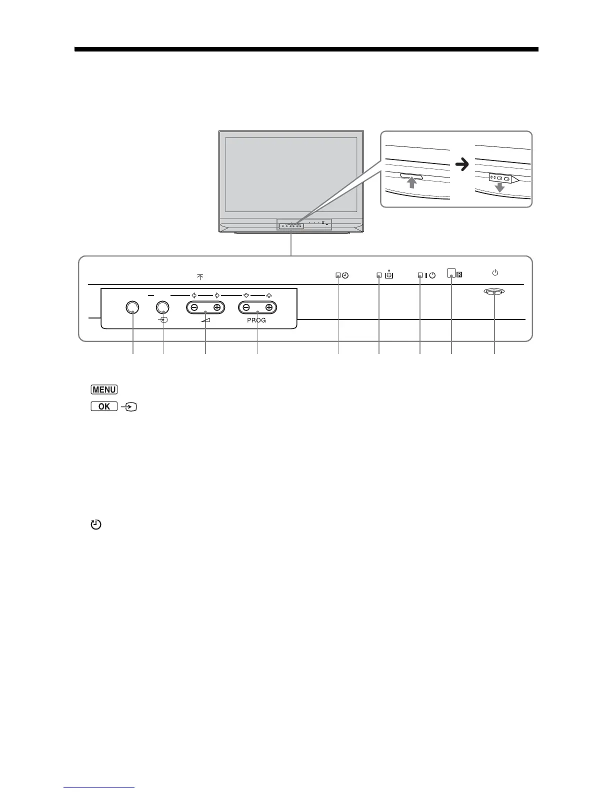Overview of the TV buttons and indicators