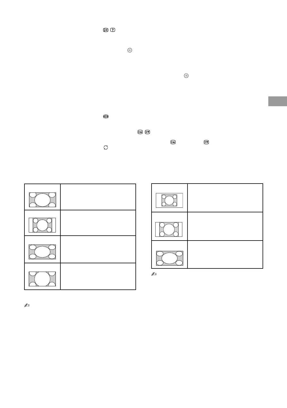 Changes the picture size. Press repeatedly to select the desired wide mode