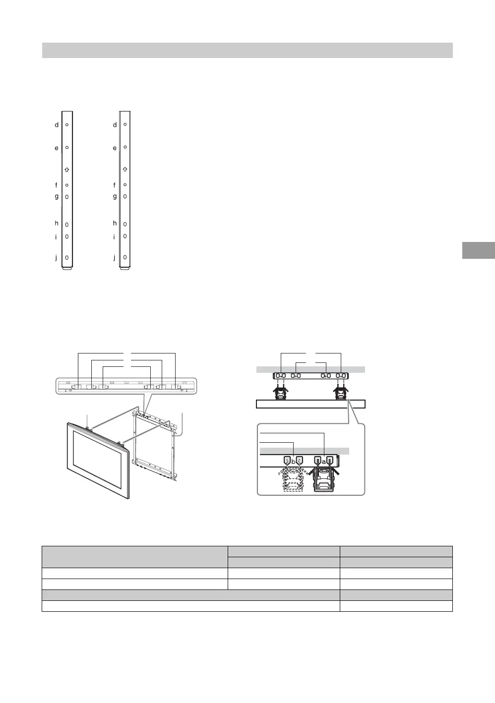 Screw and hook locations diagram/table