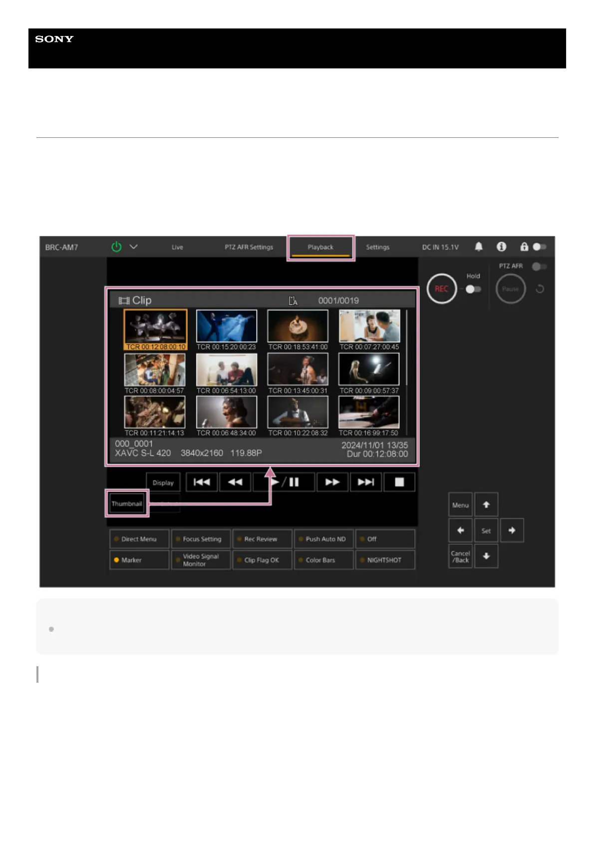 You can select a clip on the thumbnail screen and start playback of that clip.
