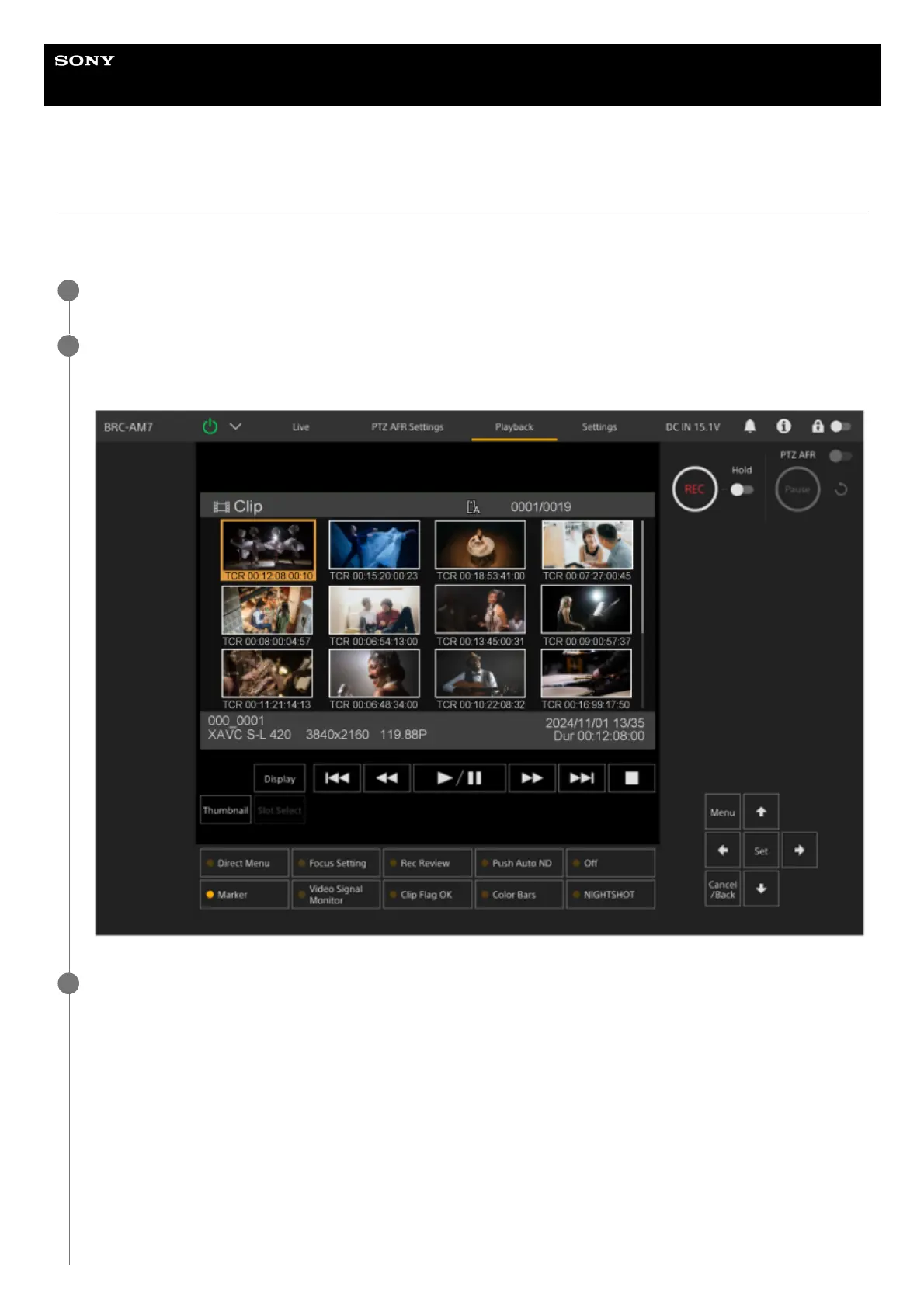 Use the arrow buttons in the GUI control panel to move the cursor to the thumbnail for the clip you want to