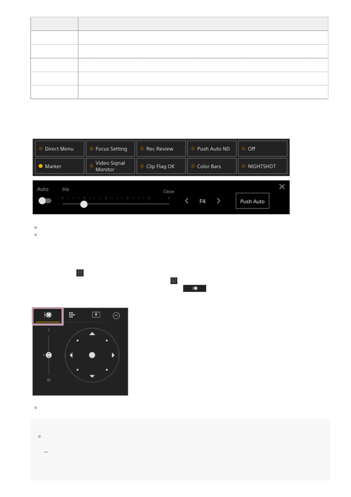 The joystick part of the framing control panel is displayed as shown below when pan/tilt operation is disabled and when pan/tilt