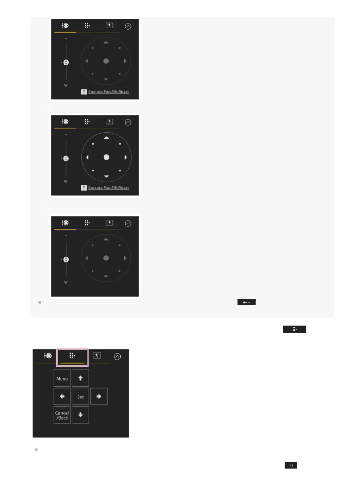 When pan/tilt operation is not initialized or needs to be reset, you can quickly access the (Pan/tilt reset) button in the