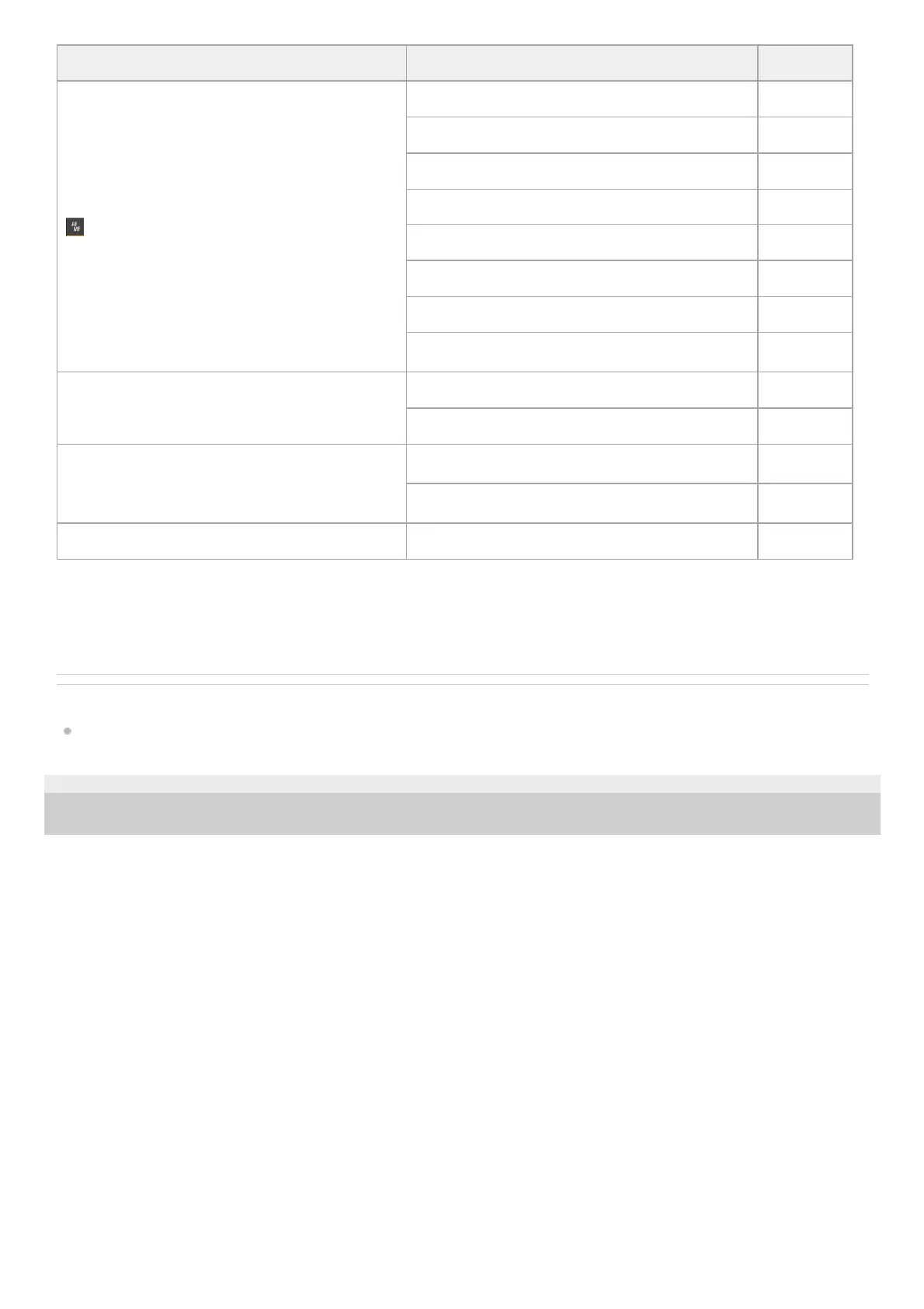 [Shooting] – [Focus] in the camera menu Focus area size and position set using [Focus Area] Yes