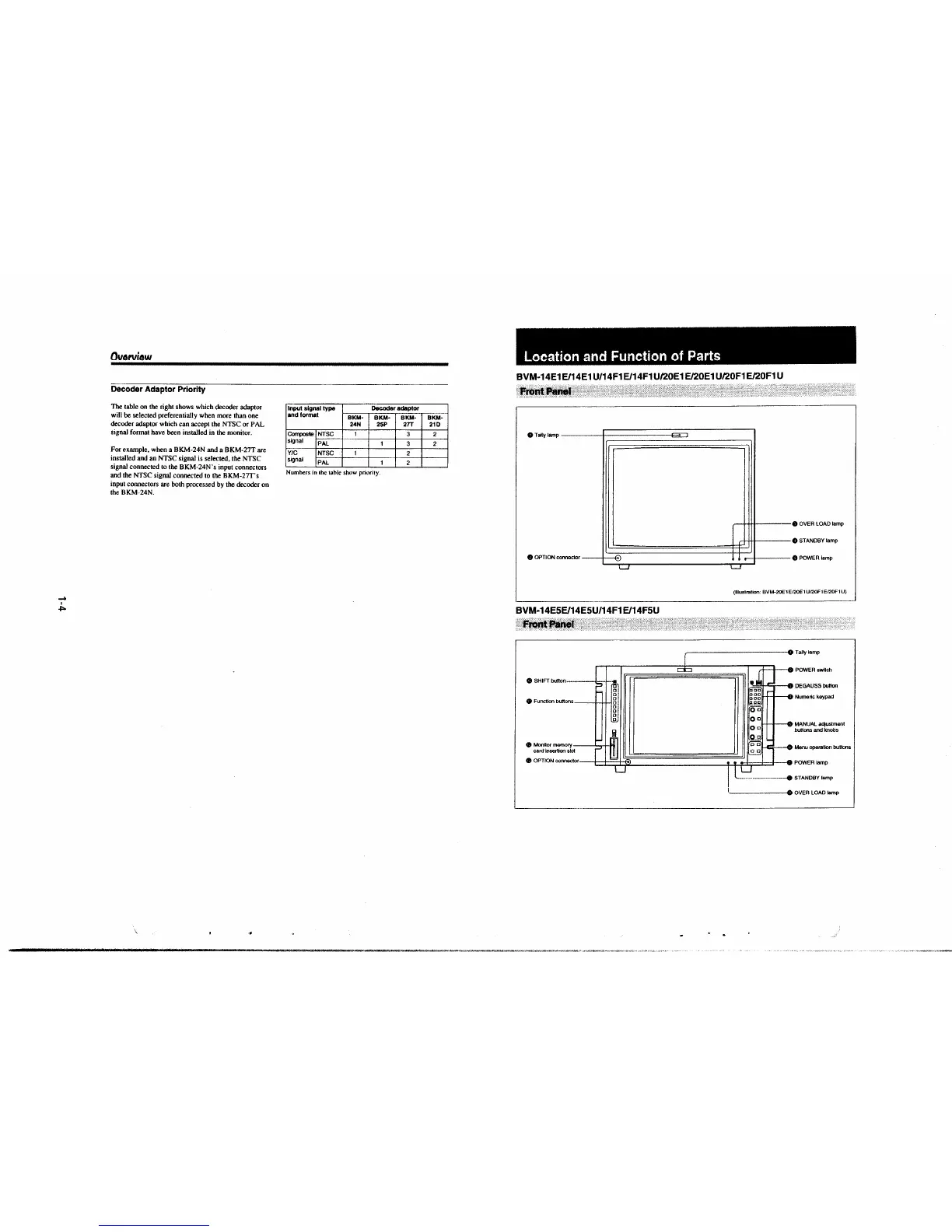 BVM-14E1 E/14E1 U/14F1 E/14F1 U/20E1 E/20E1 U/20F1 E/20F1 U