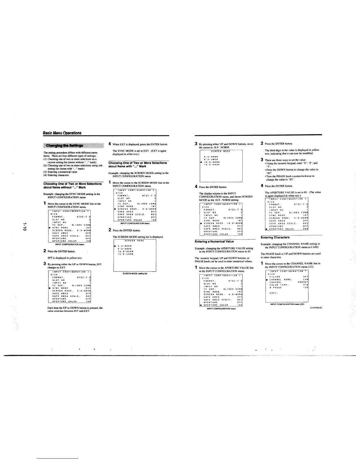 1 Move the cursor to the SYNC MODE line in the