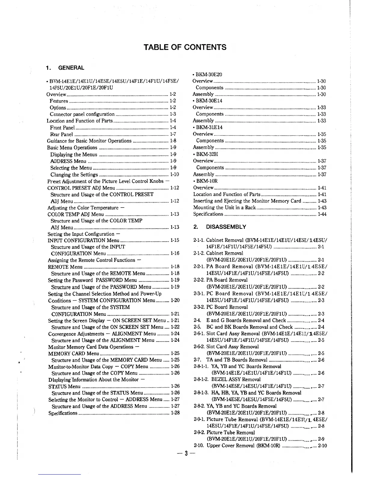 (BVM-14E5E/14E5U/14FlE/14FlU) ................... 2-7