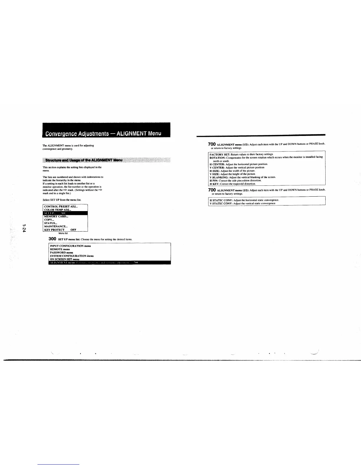 700 ALIGNMENT menu (1/2): Adjust each item with the UP and DOWN buttons or PHASE knob,