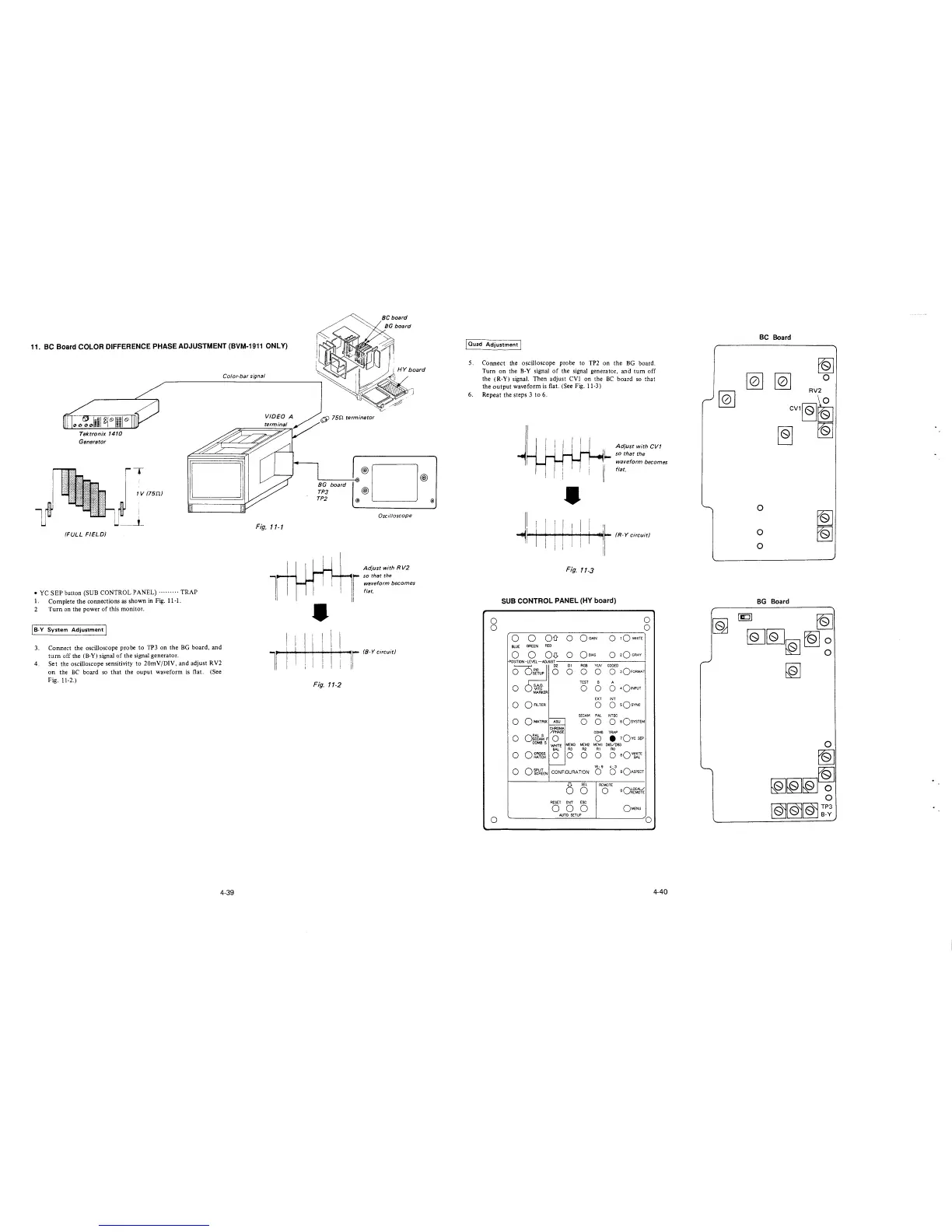 11. BC Board COLOR DIFFERENCE PHASE ADJUSTMENT (BVM-1911 ONLY)
