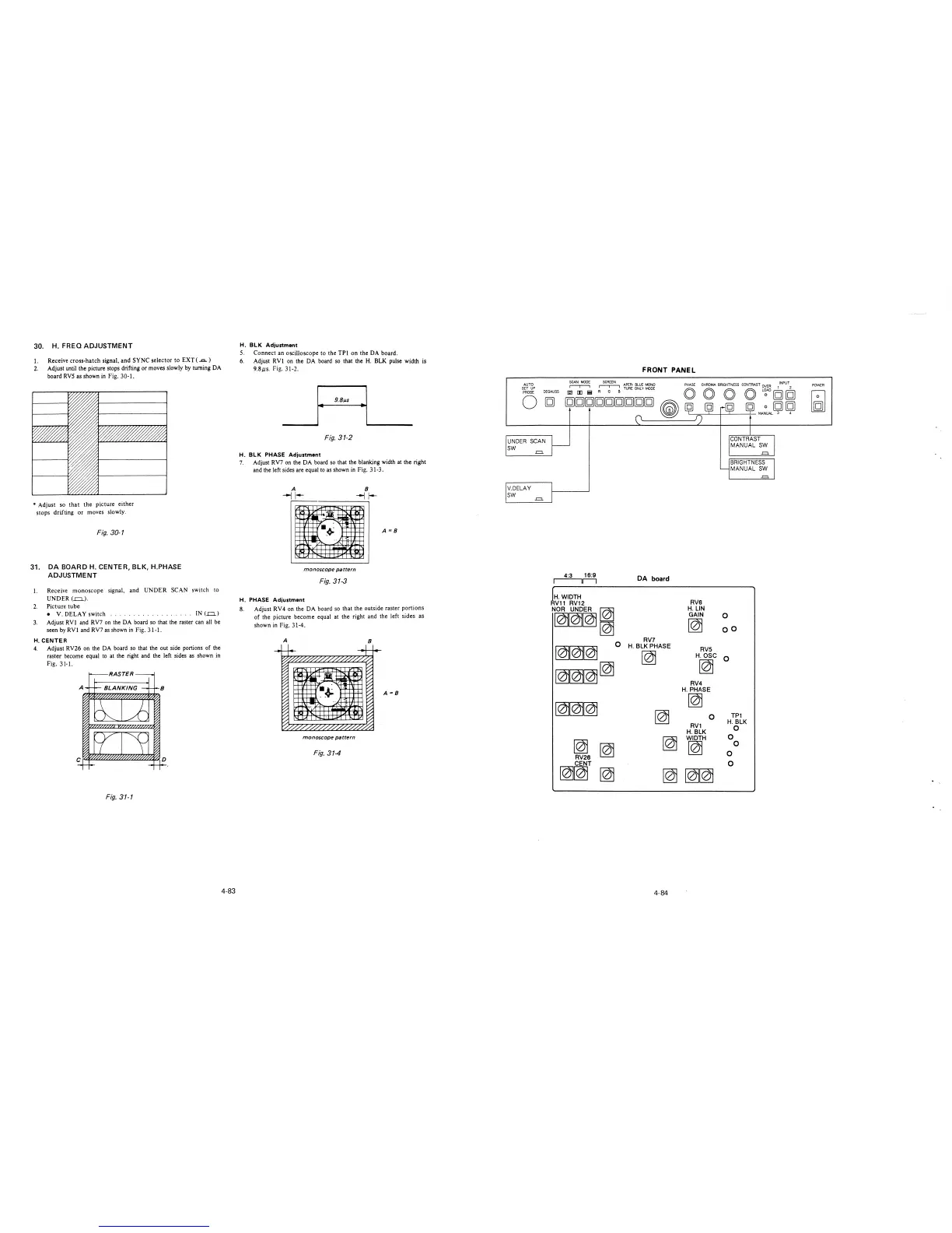 7. Adjust RV7 on the DA board so that the blanking width at the right