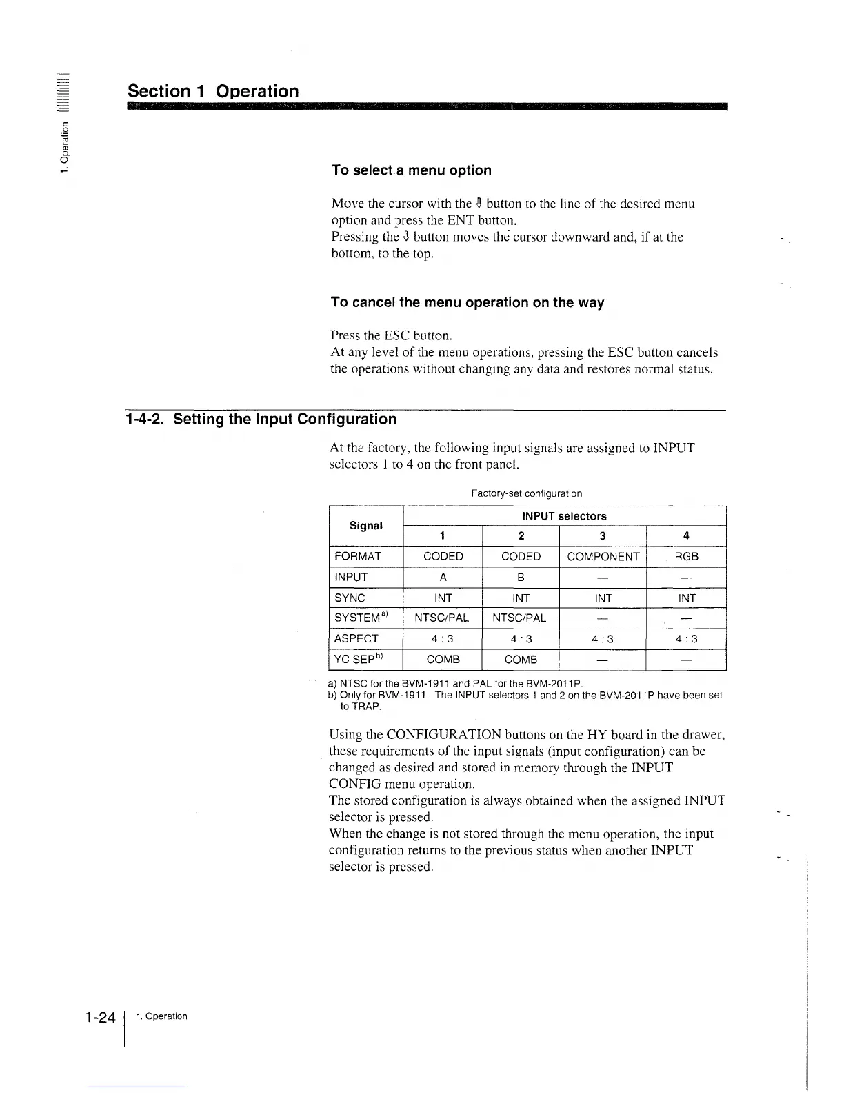 b) Only for BVM-1911. The INPUT selectors 1 and 2 on the BVM-2011 P have been set