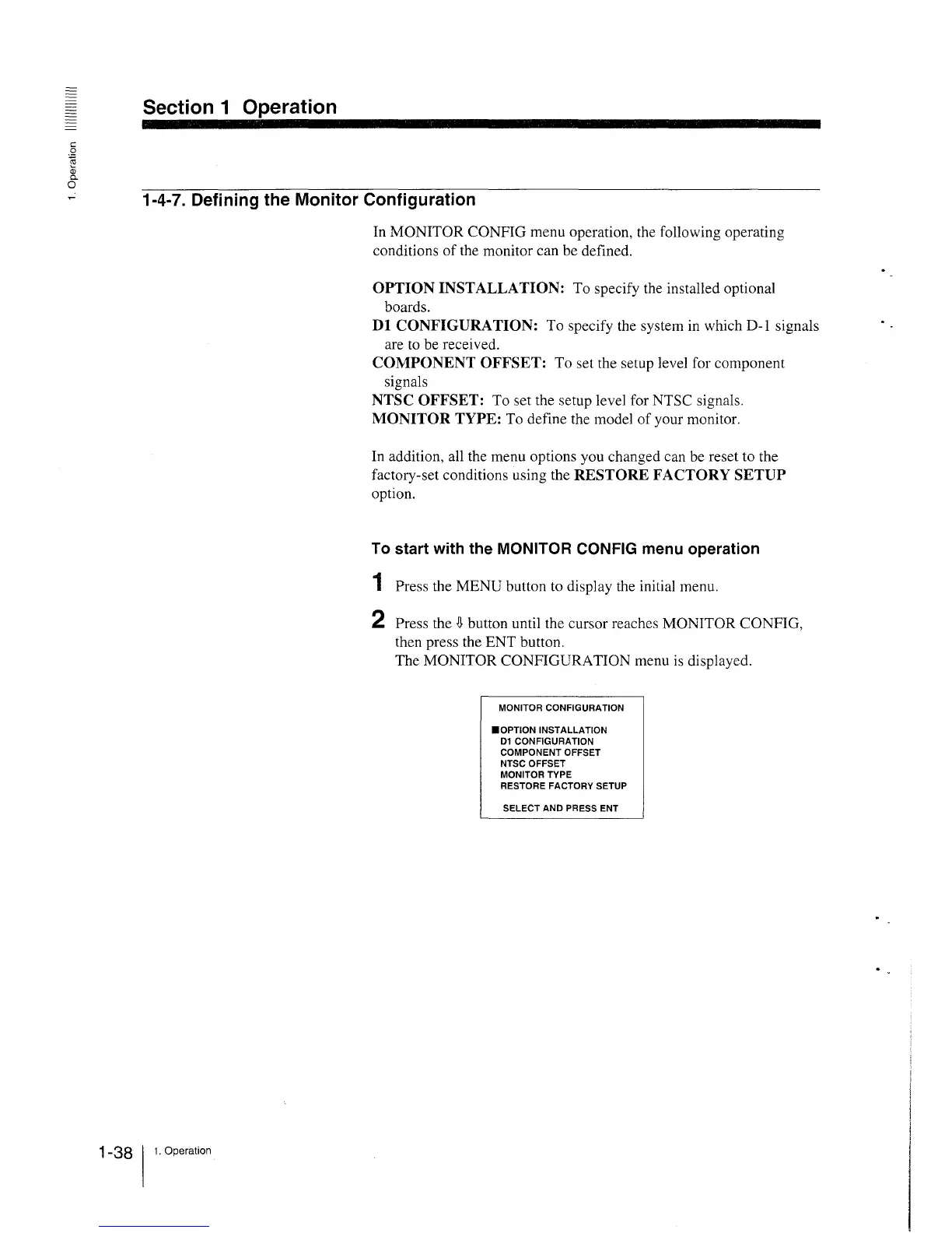To start with the MONITOR CONFIG menu operation