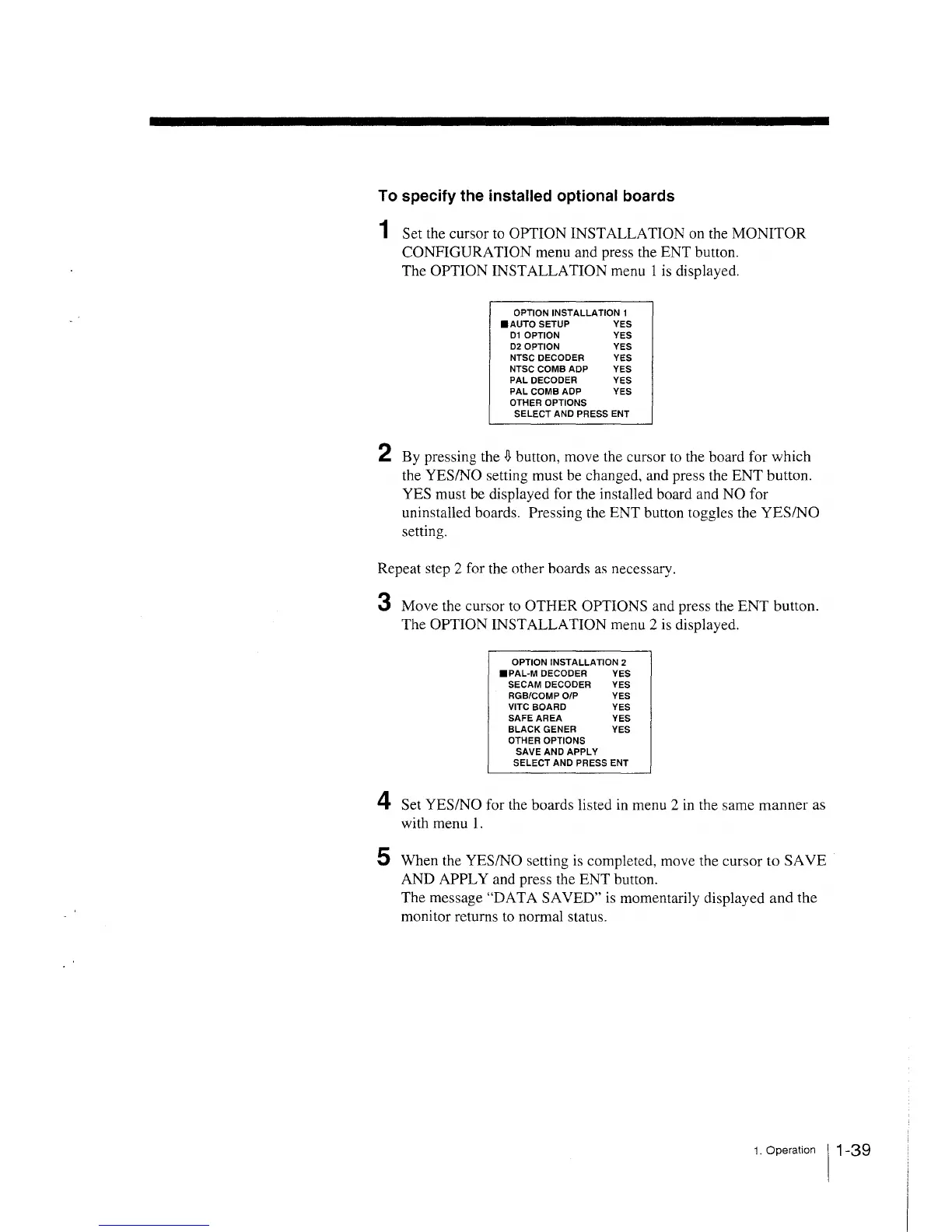 1 Set the cursor to OPTION INSTALLATION on the MONITOR