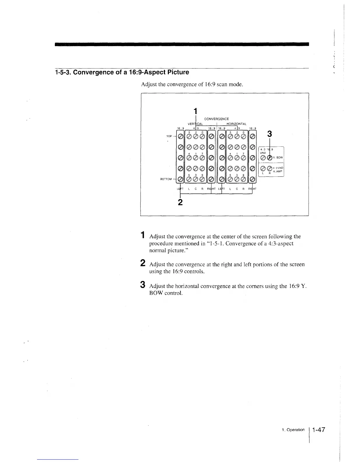 3 Adjust the horizontal convergence at the corners using the 16:9 Y.