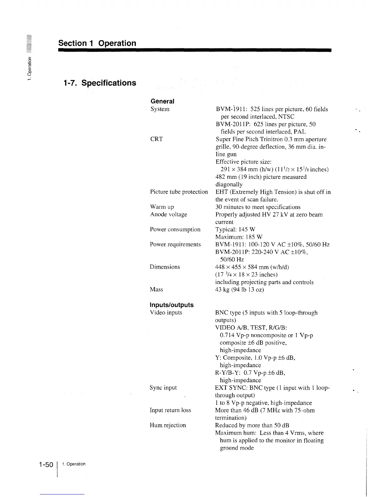 1-7. Specifications