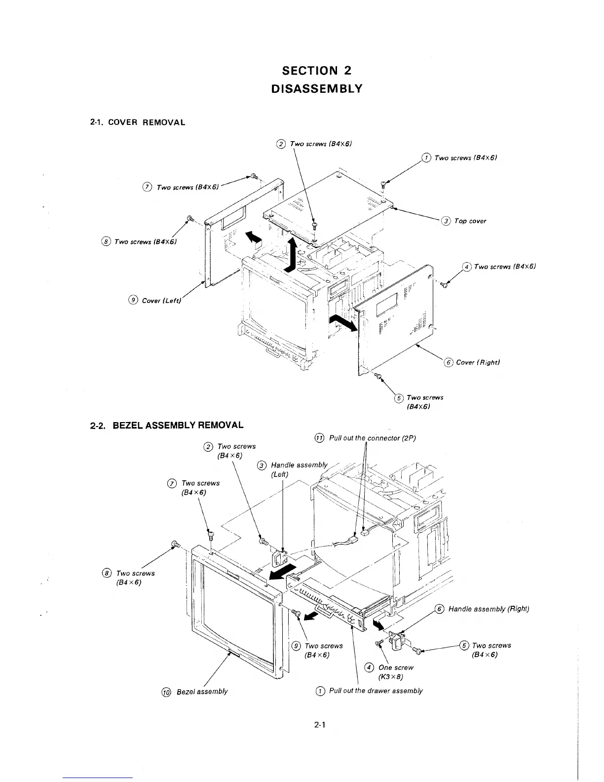 Sony BVM-1911 - Section 2 Disassembly; 2-1. Cover Removal; 2-2. Bezel Assembly Removal