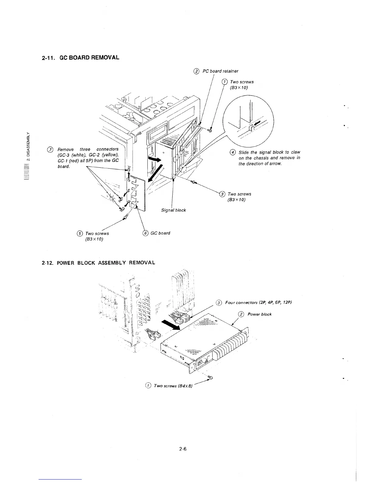 Sony BVM-1911 - 2-11. GC Board Removal; 2-12. Power Block Assembly Removal