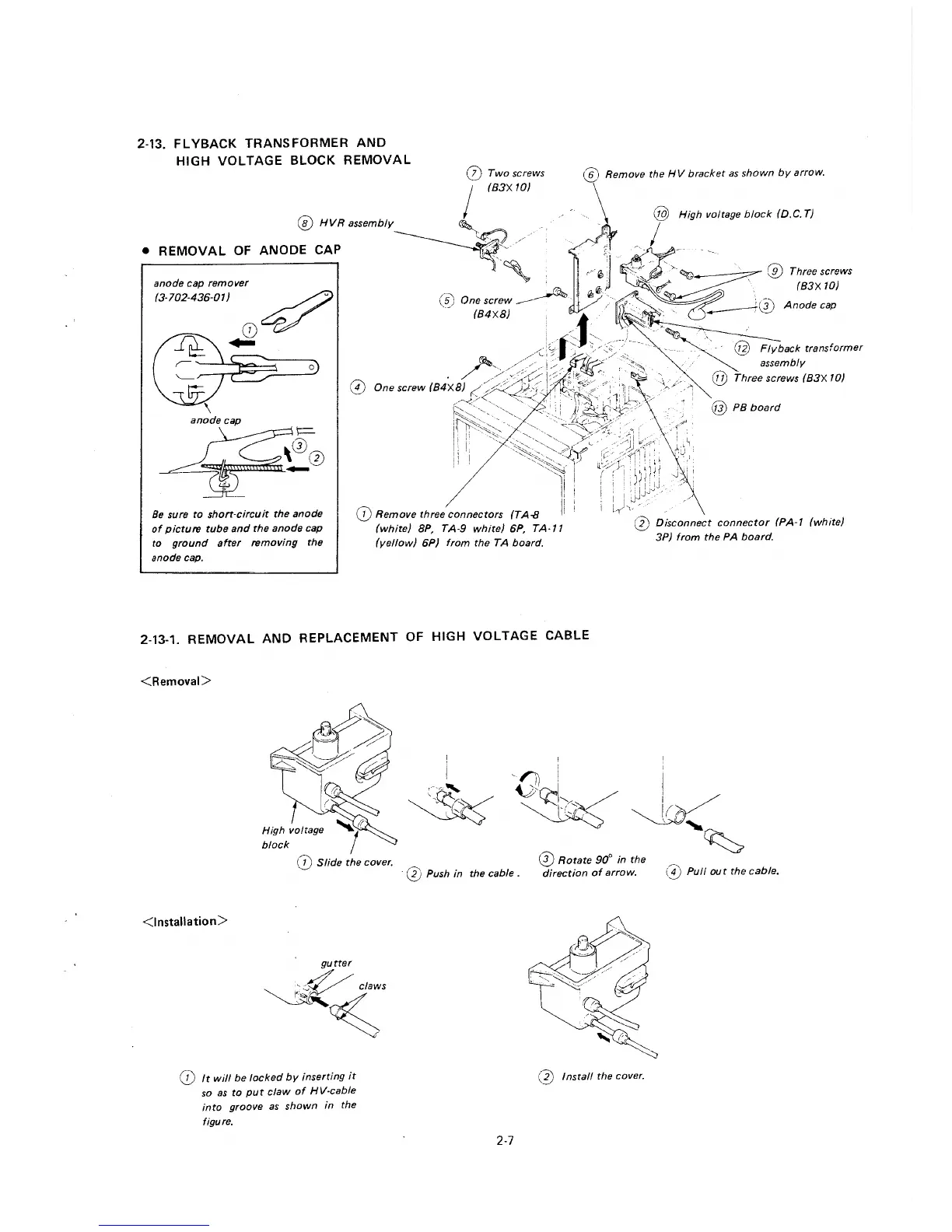 2-13-1. REMOVAL AND REPLACEMENT OF HIGH VOLTAGE CABLE