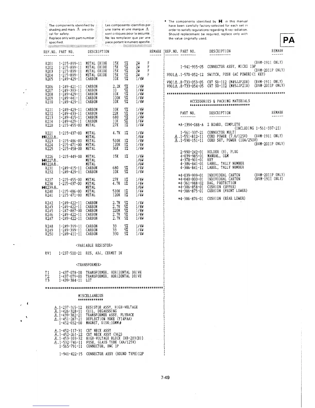 (BVM-2011P ONLY)