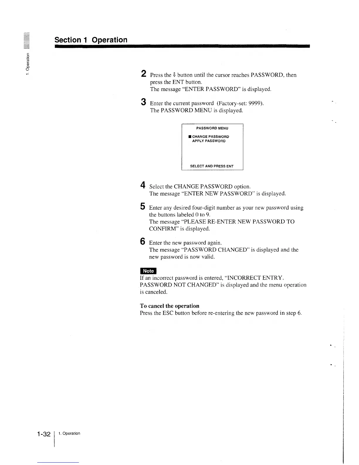 PASSWORD NOT CHANGED" is displayed and the menu operation