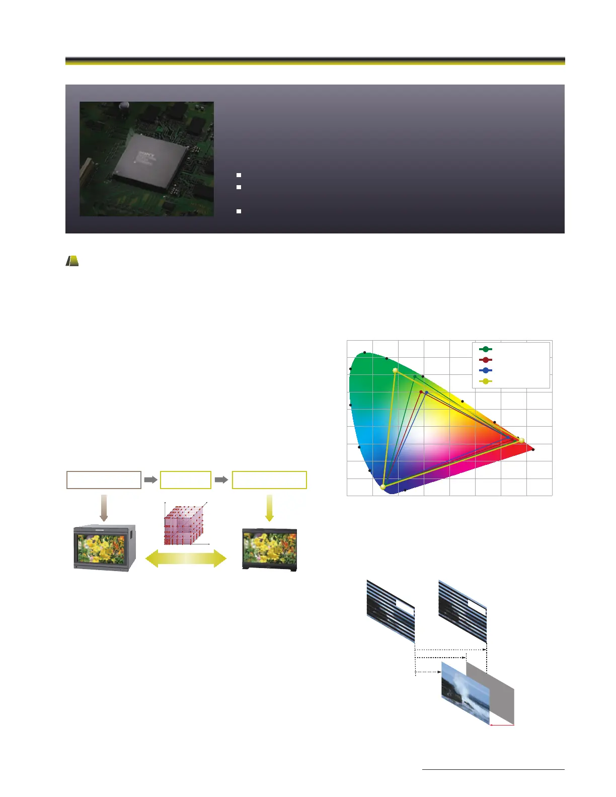 high quality interlaced to progressive conversion algorithm and a highly accurate color management system.