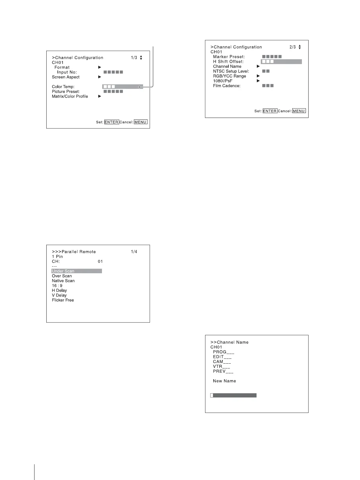 select the desired item and press the ENTER or Ent