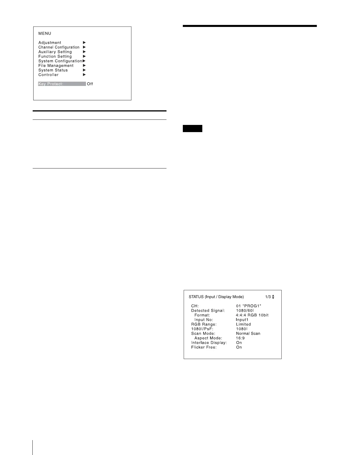 status, display mode, and input signal information of the