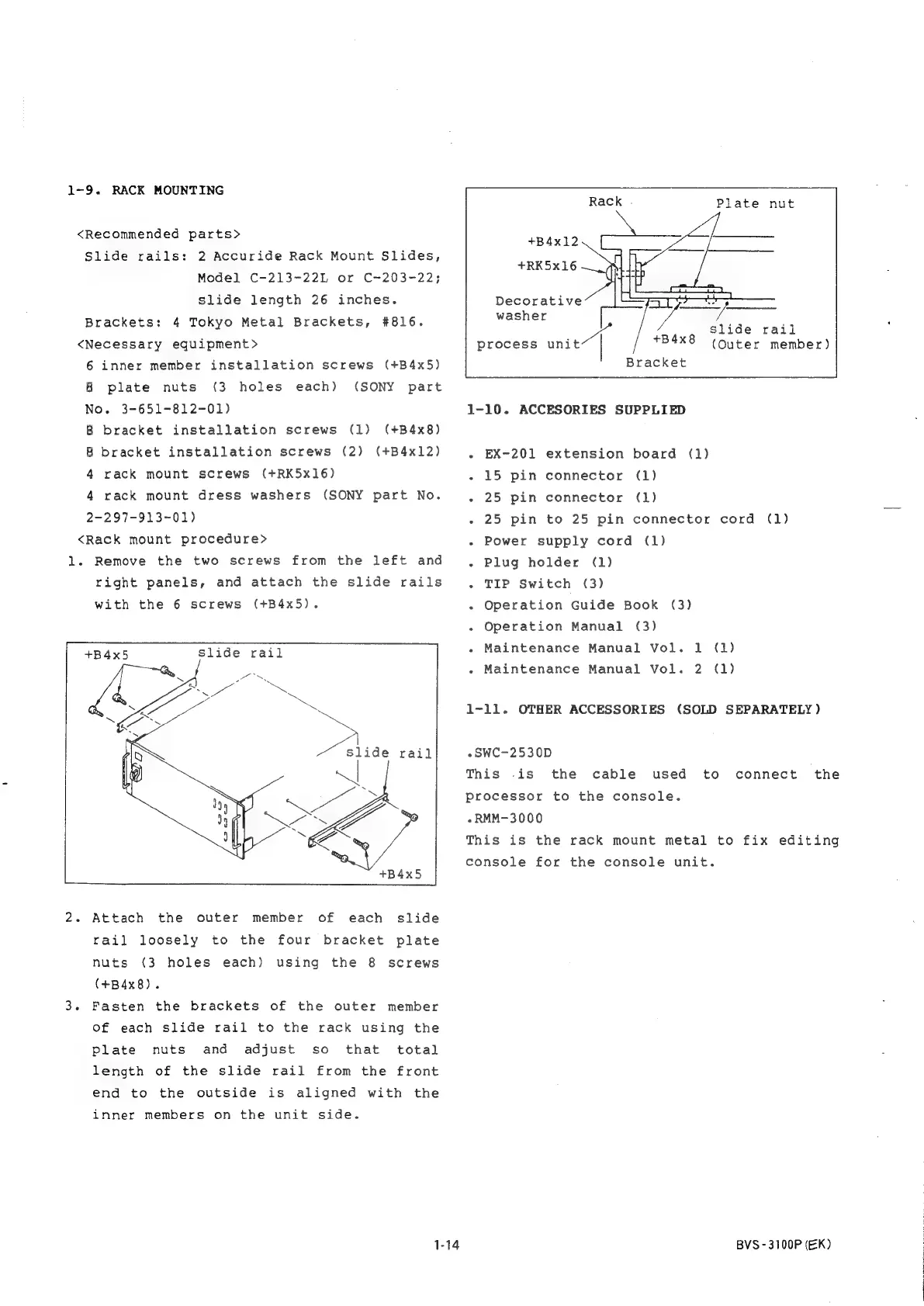 Sony BVS-3100P - Rack Mounting; Accessories Supplied; Other Accessories (Sold Separately)