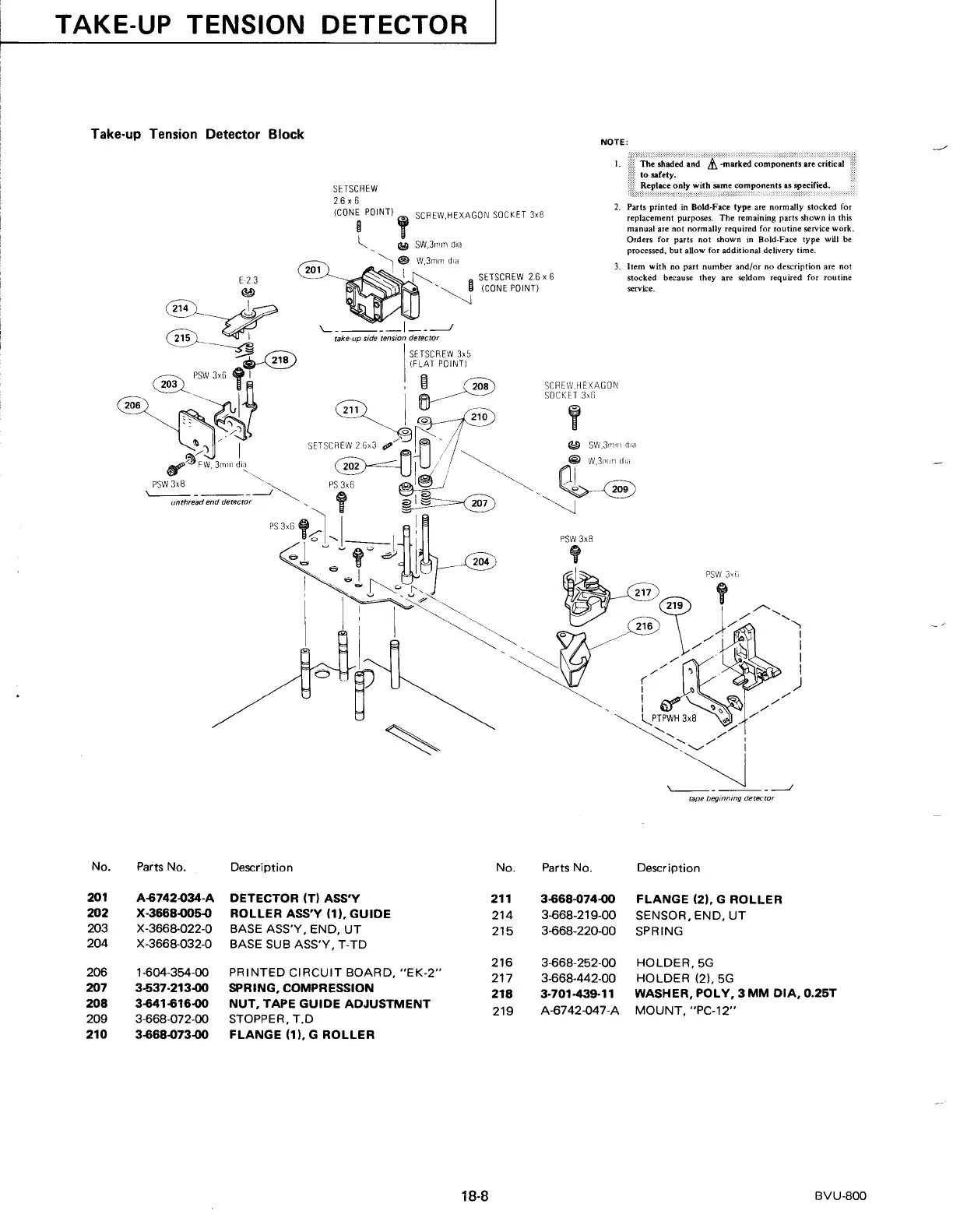 Sony BVU-800 - TAKE-UP TENSION DETECTOR; Take-up Tension Detector Block
